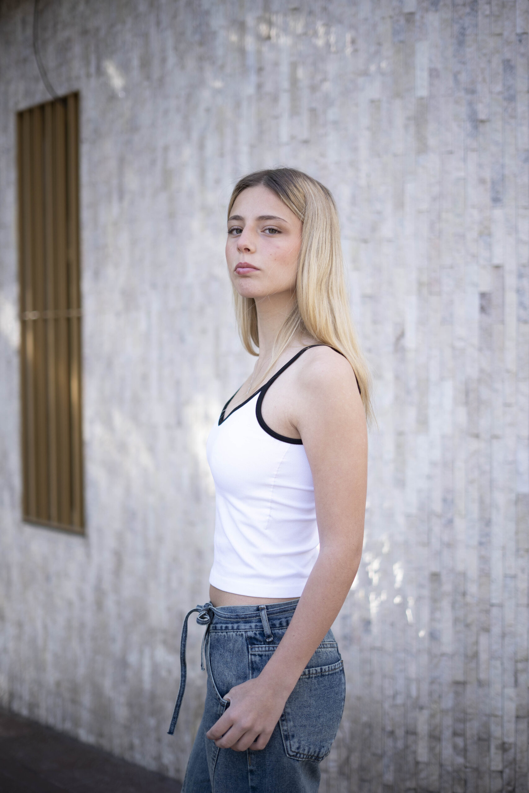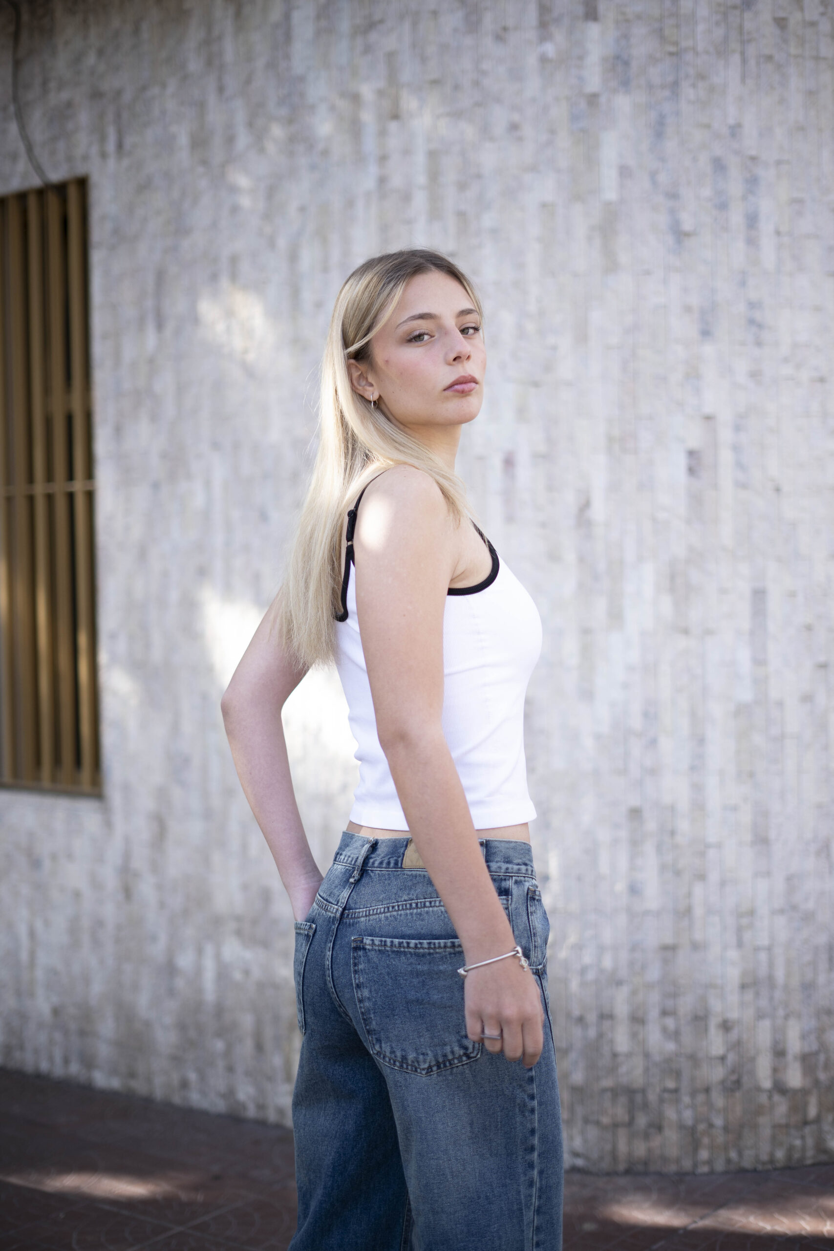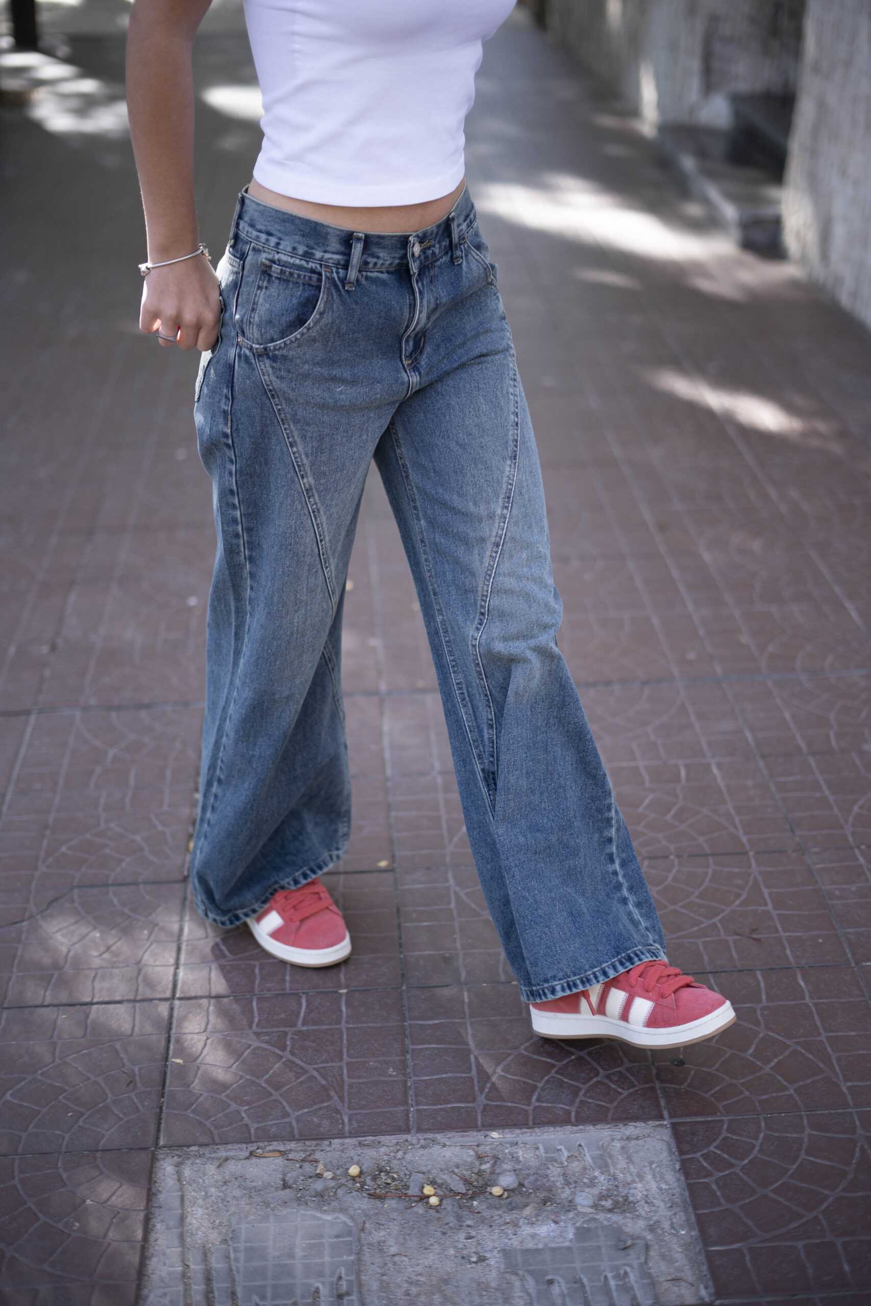 Jean rígido oxford con recorte óxido oscuro con cordón denim opcional