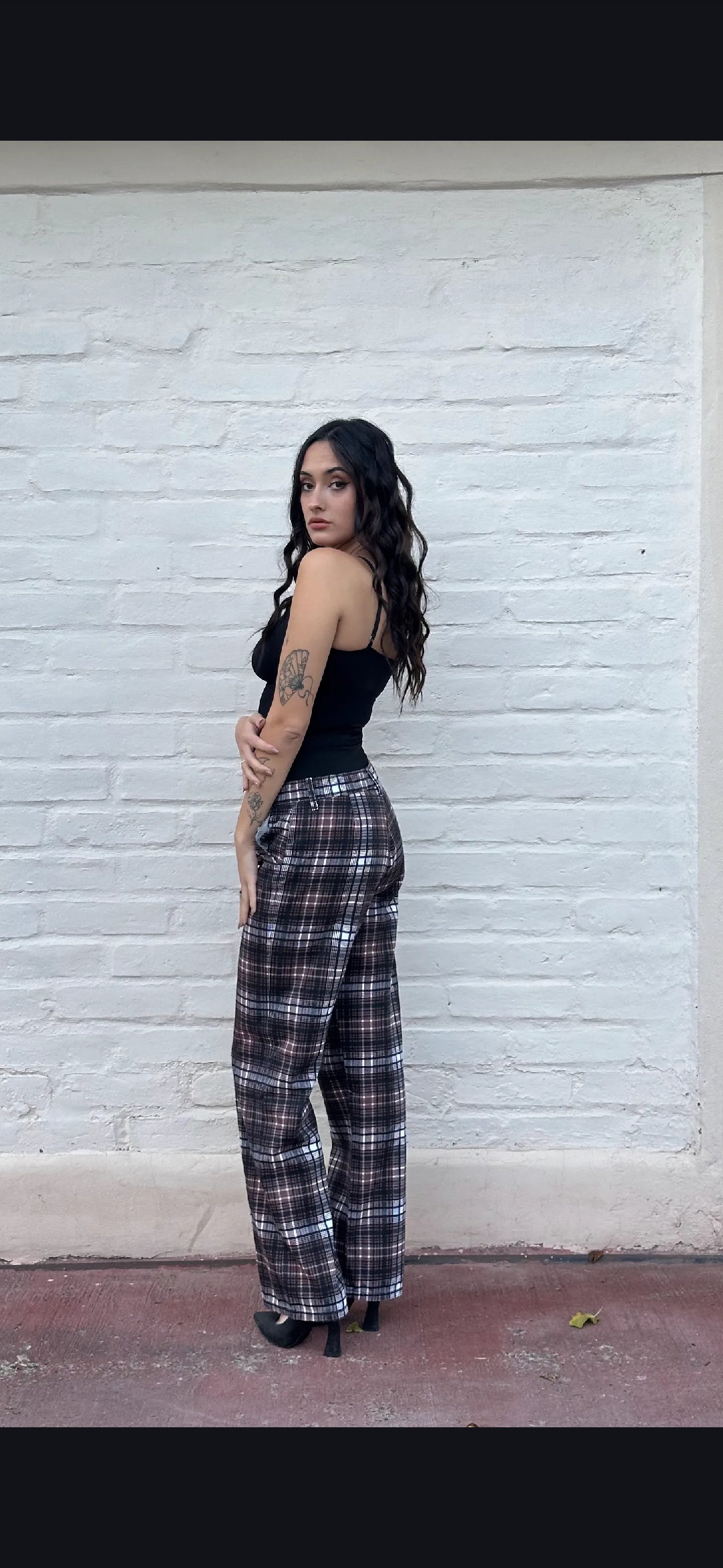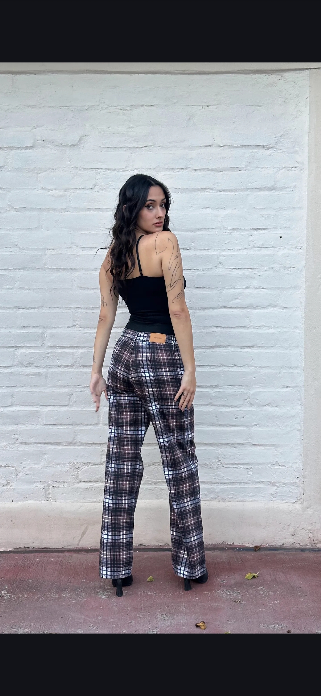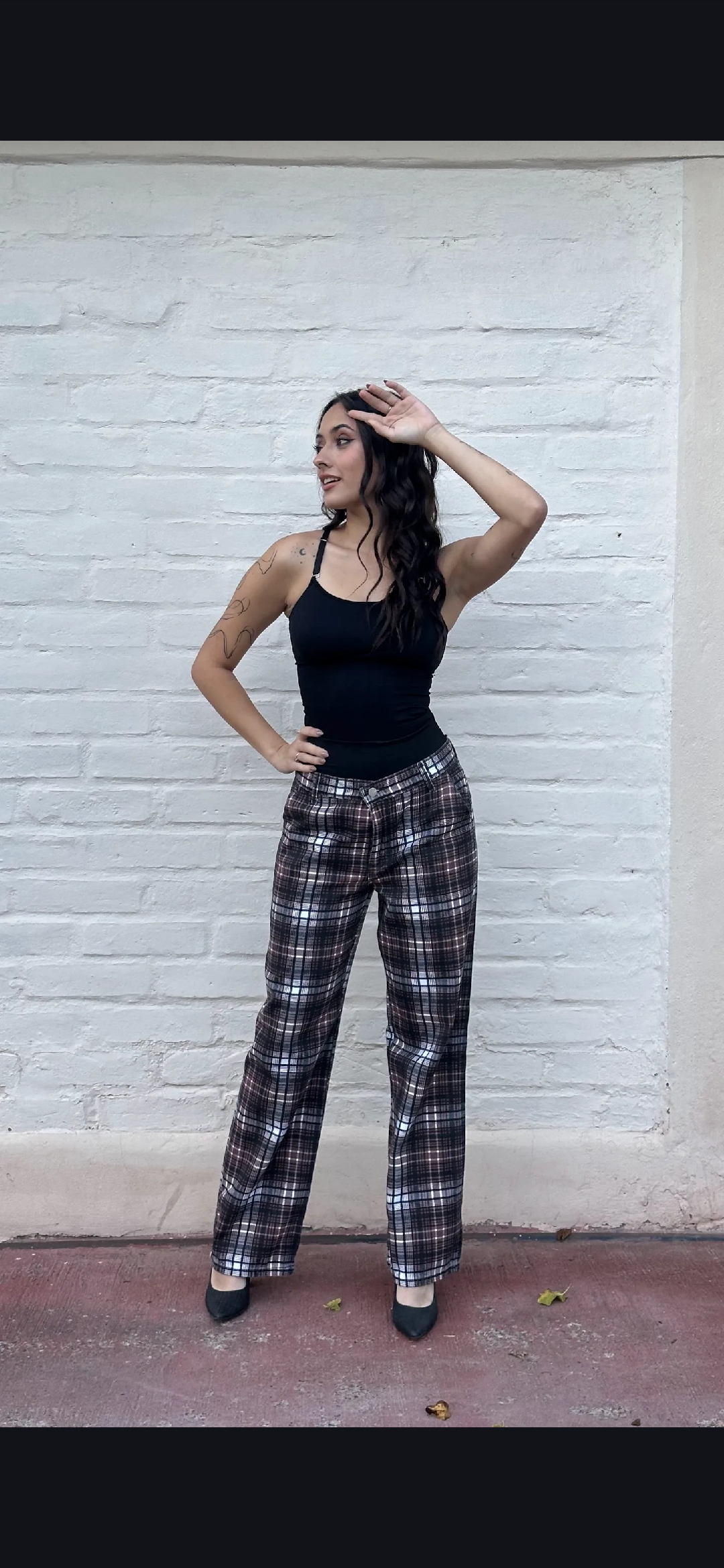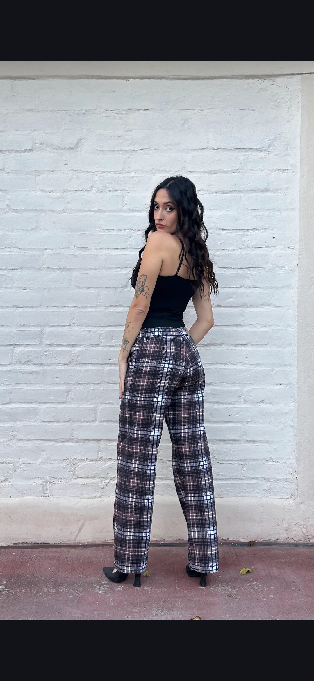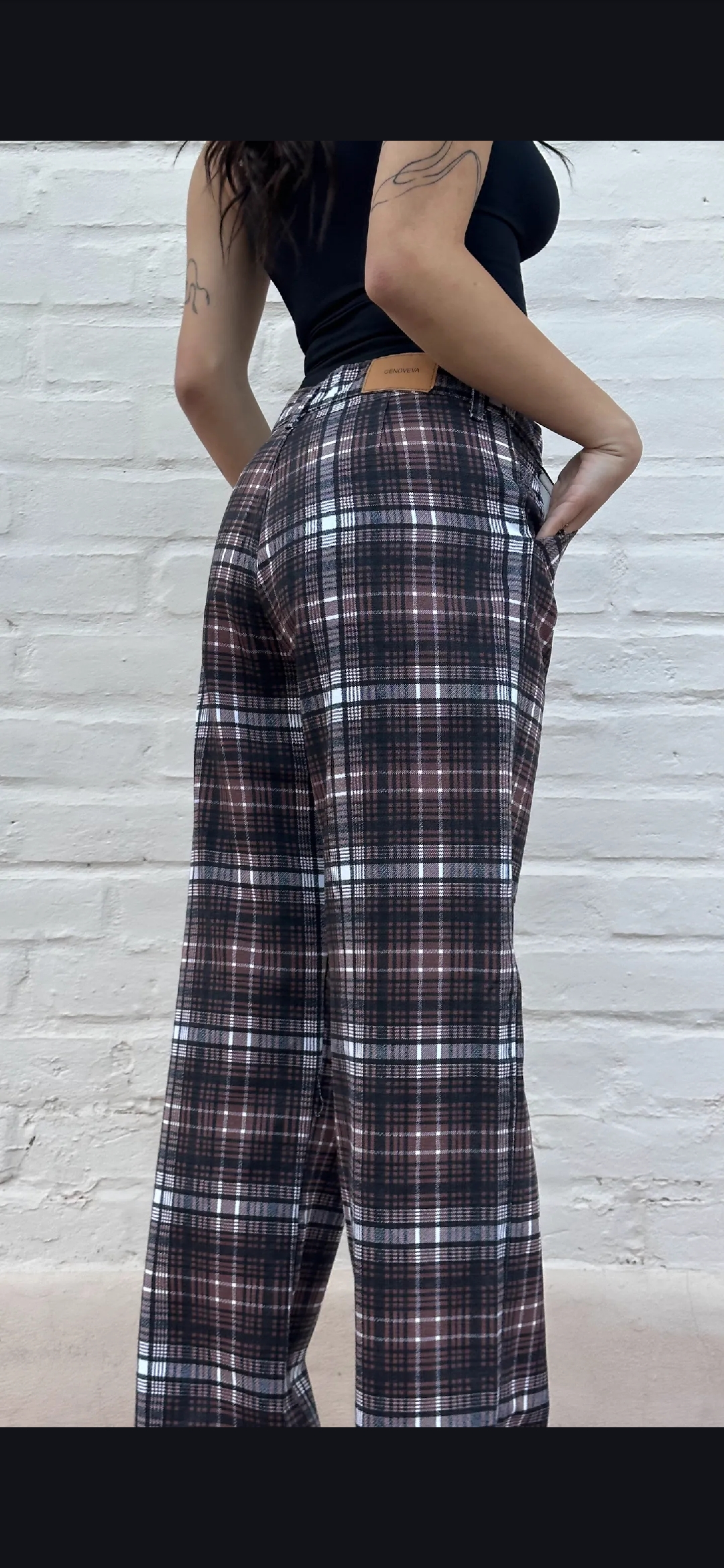 Pantalón rígido recto escocés tiro medio alto