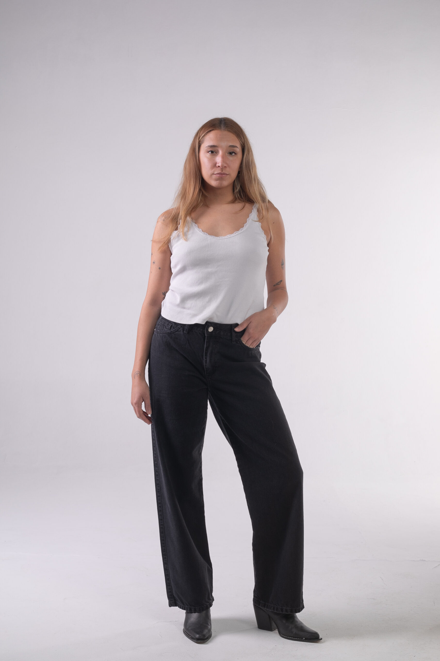 Jean rígido wide leg negro stone