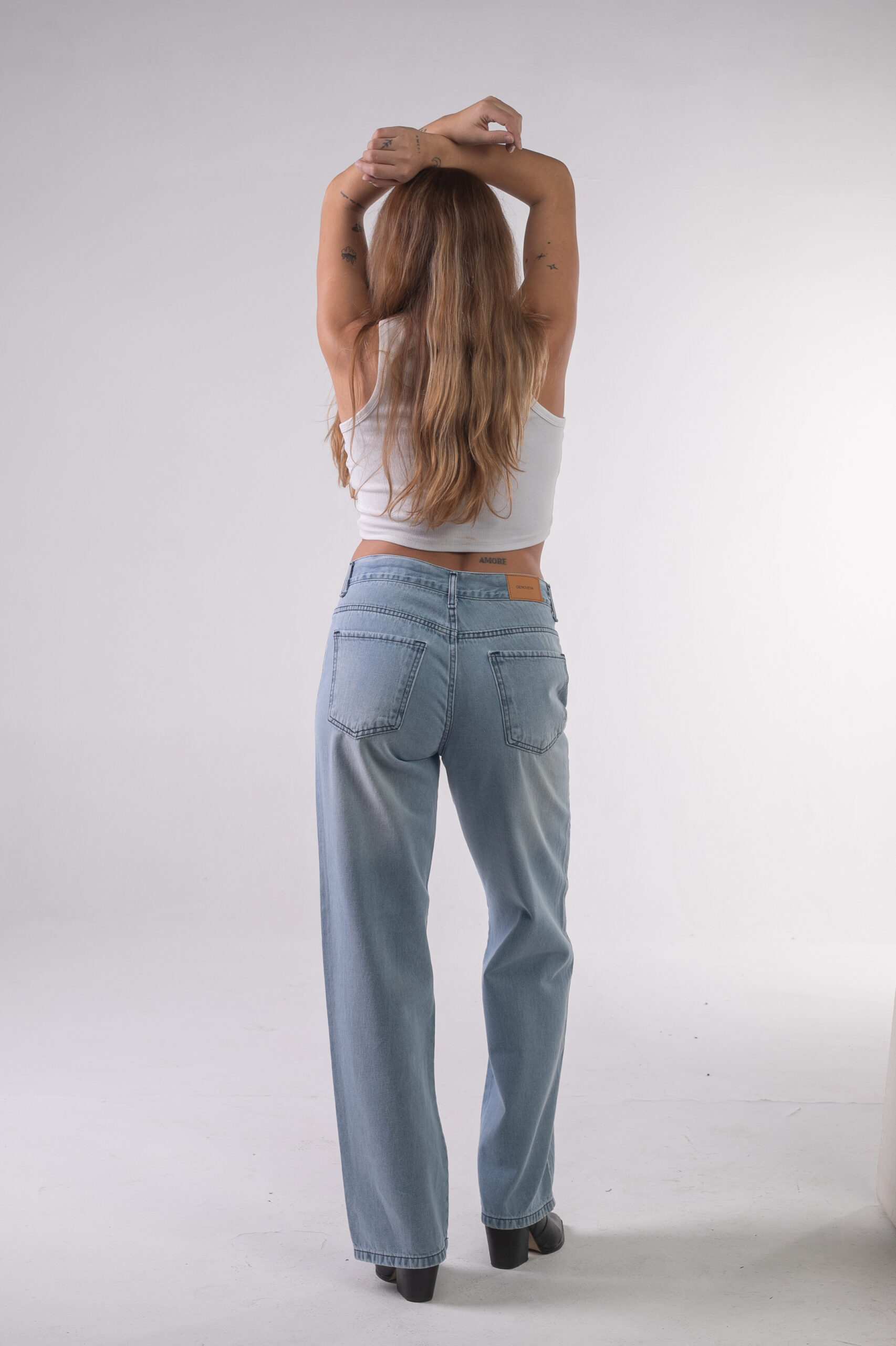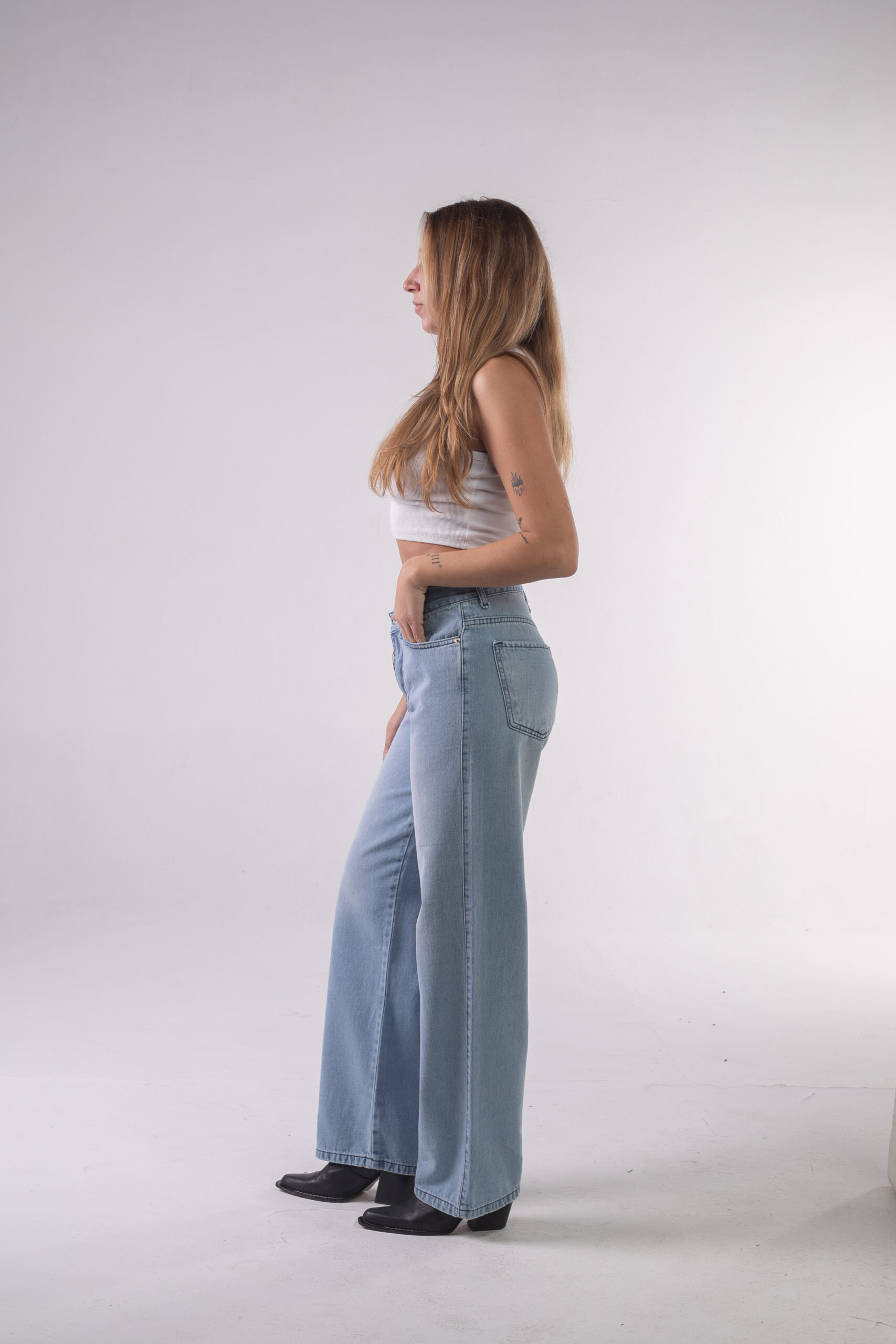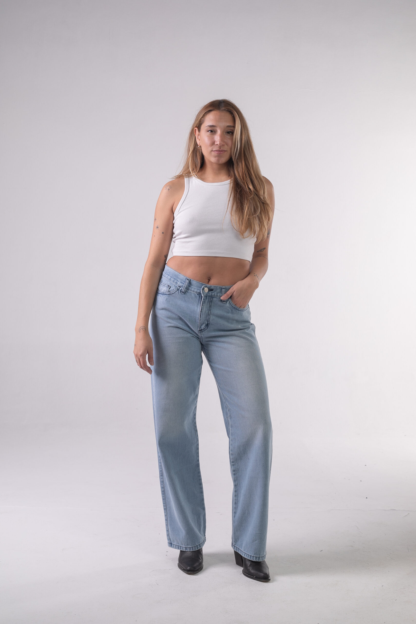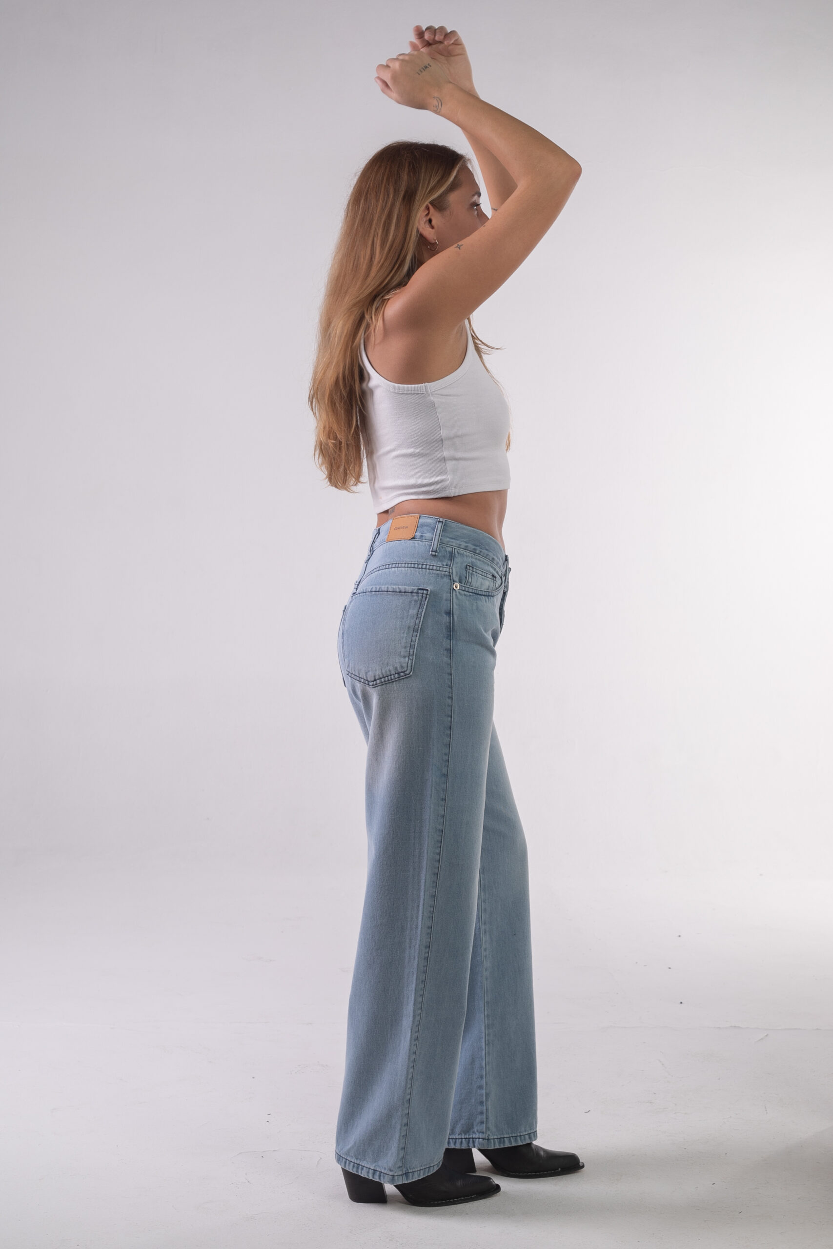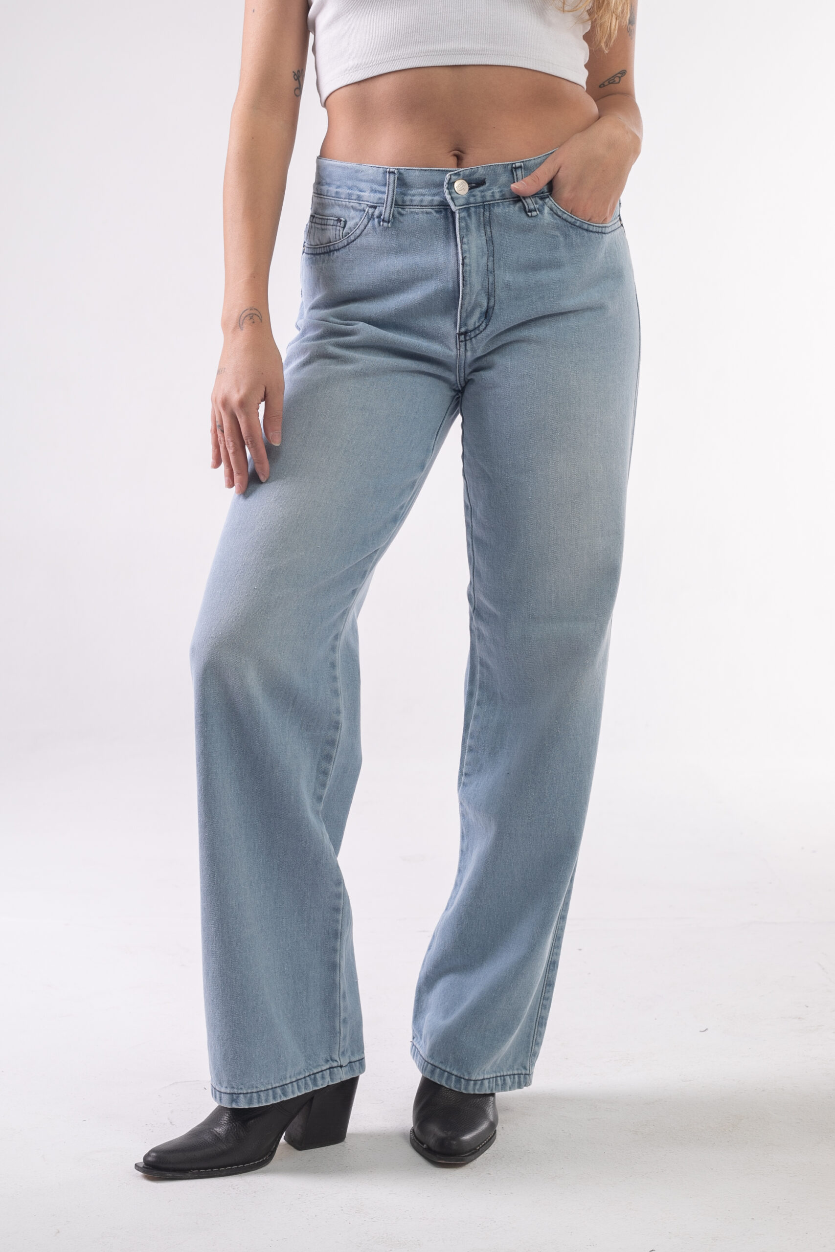 Jean rígido pierna ancha celeste láser